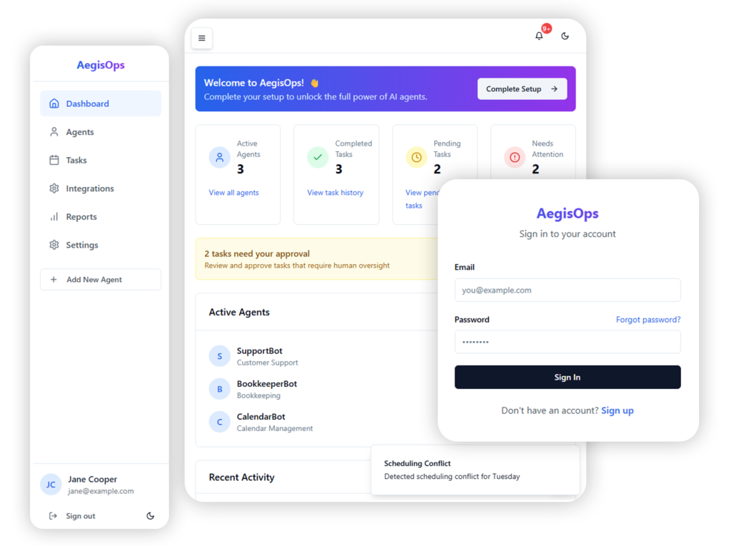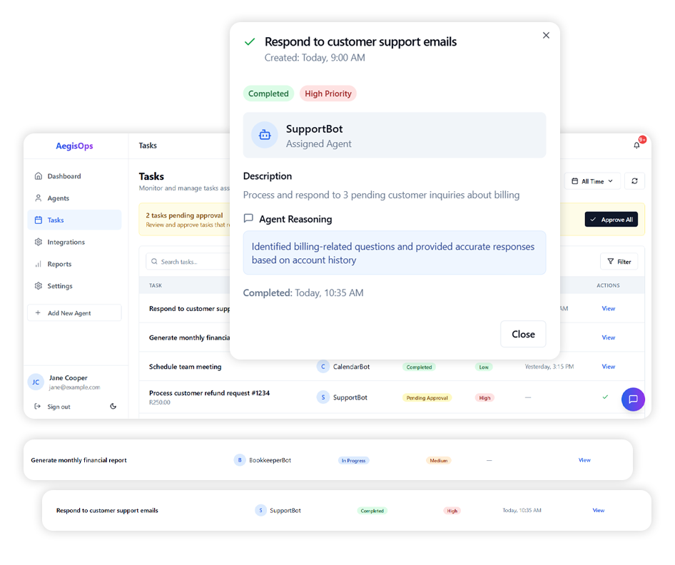 AegisOps was designed as an Agentic AI Operations Platform that allows businesses to delegate real operational tasks to specialized AI agents while maintaining human oversight and control.