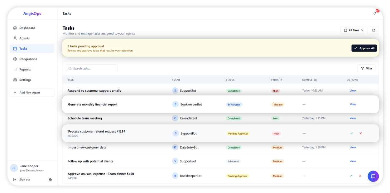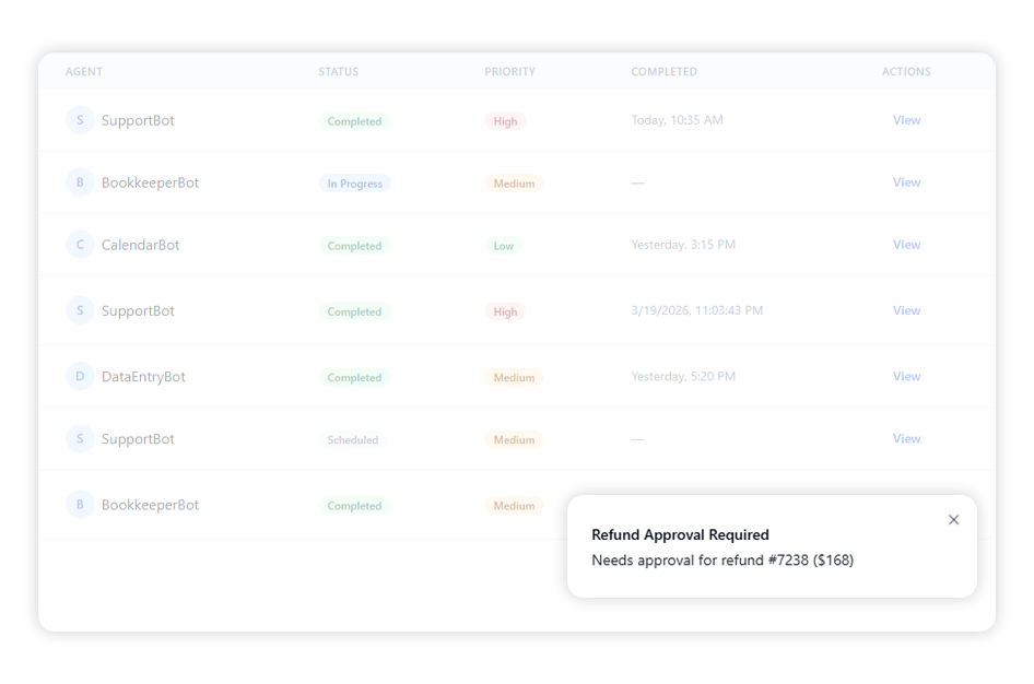 “Our team handles a lot of operational work across marketing, sales, and customer support. If AI agents can handle these tasks, I need a clear way to monitor them and approve important actions.”