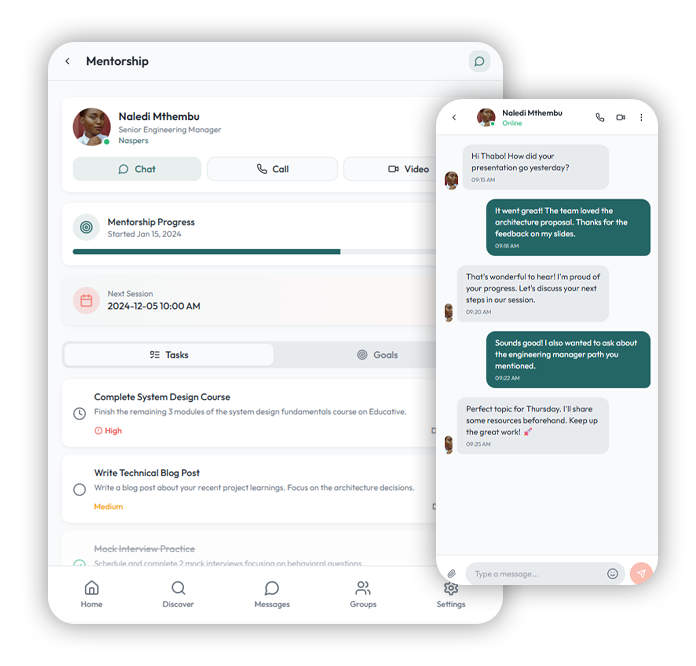 This feature is the core differentiator of the platform. Instead of mentorship being purely conversational, it introduces structure through tasks and goals, allowing both mentors and mentees to track measurable progress over time.