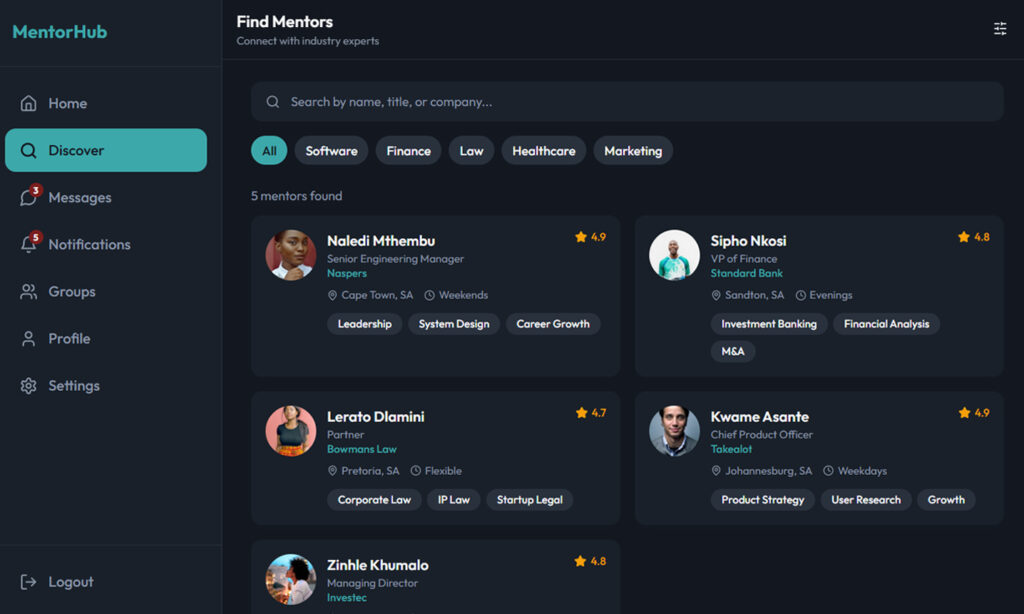 This enables users to quickly identify the most relevant mentors, increasing the likelihood of meaningful and successful mentorship matches.