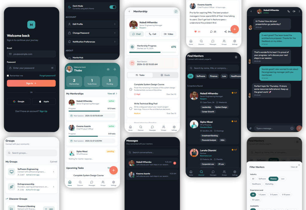 Designing a structured, goal-driven mentorship ecosystem that connects professionals with experienced mentors through guided progress tracking, real-time communication, and community engagement.